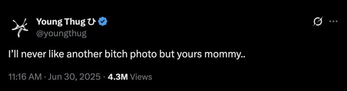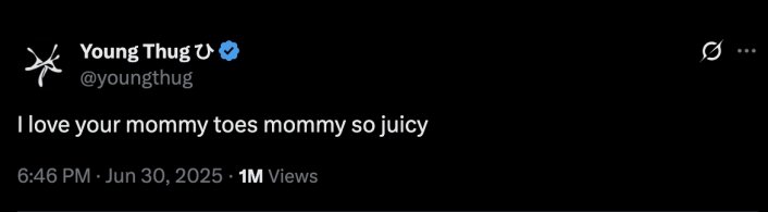 In one of the viral posts, Thug tweeted, “I’ll never like another b**** photo but yours mommy..” He followed it up with another message that read, “I love your mommy toes mommy so juicy.”