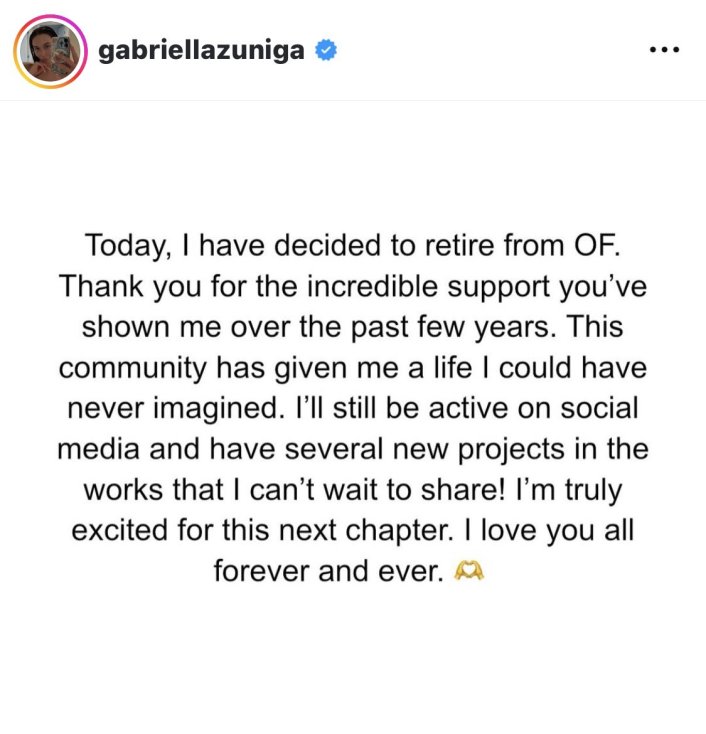 Just one day after reaching a confidential settlement in her $50 million civil lawsuit against Shannon Sharpe, 21-year-old Gabriella Zuniga announced her retirement from OnlyFans. In an Instagram post shared on Saturday (July 19), Zuniga thanked her followers for their support and hinted at upcoming projects, writing, “I’m truly excited for this next chapter. I love you all forever and ever.”